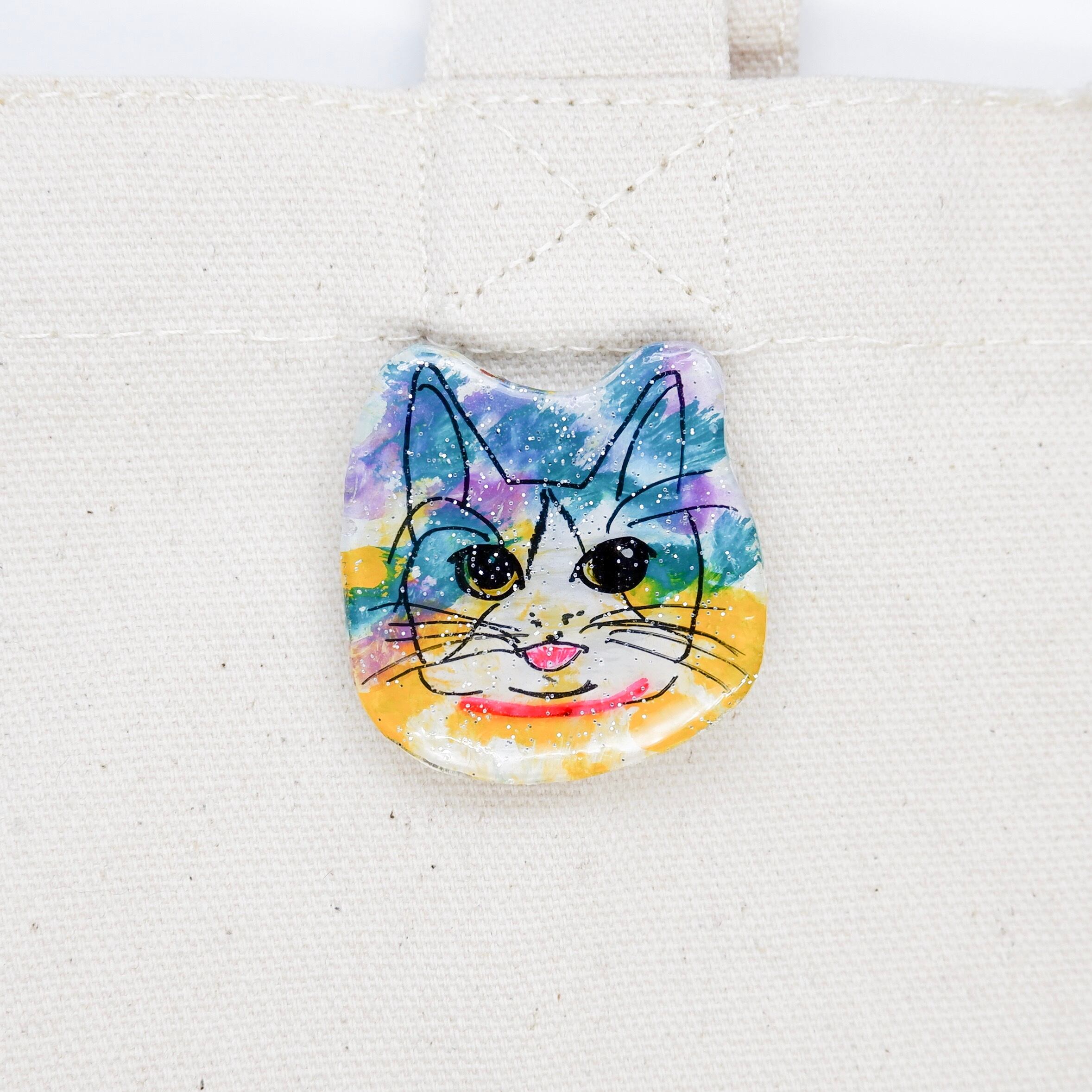 ホログラムがかわいらしい手書きのブローチです。